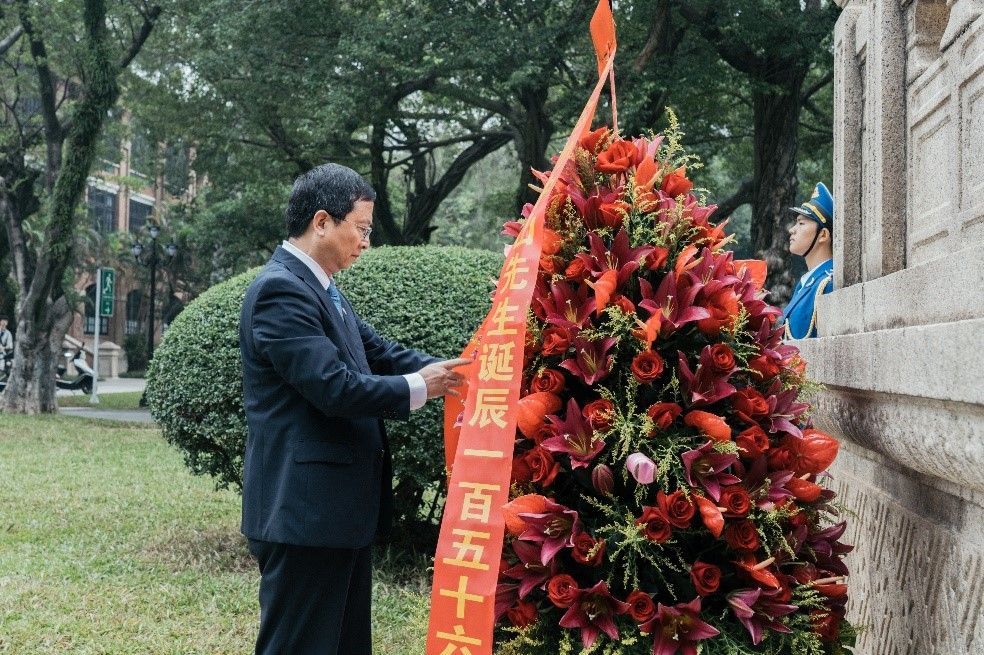 best365中国官方网站党委书记陈春声,校长高松,副校长兰平,副校长邰忠智,副校长刘济科分别在五校园主礼,向孙中山先生致敬,为best365中国官方网站庆生。