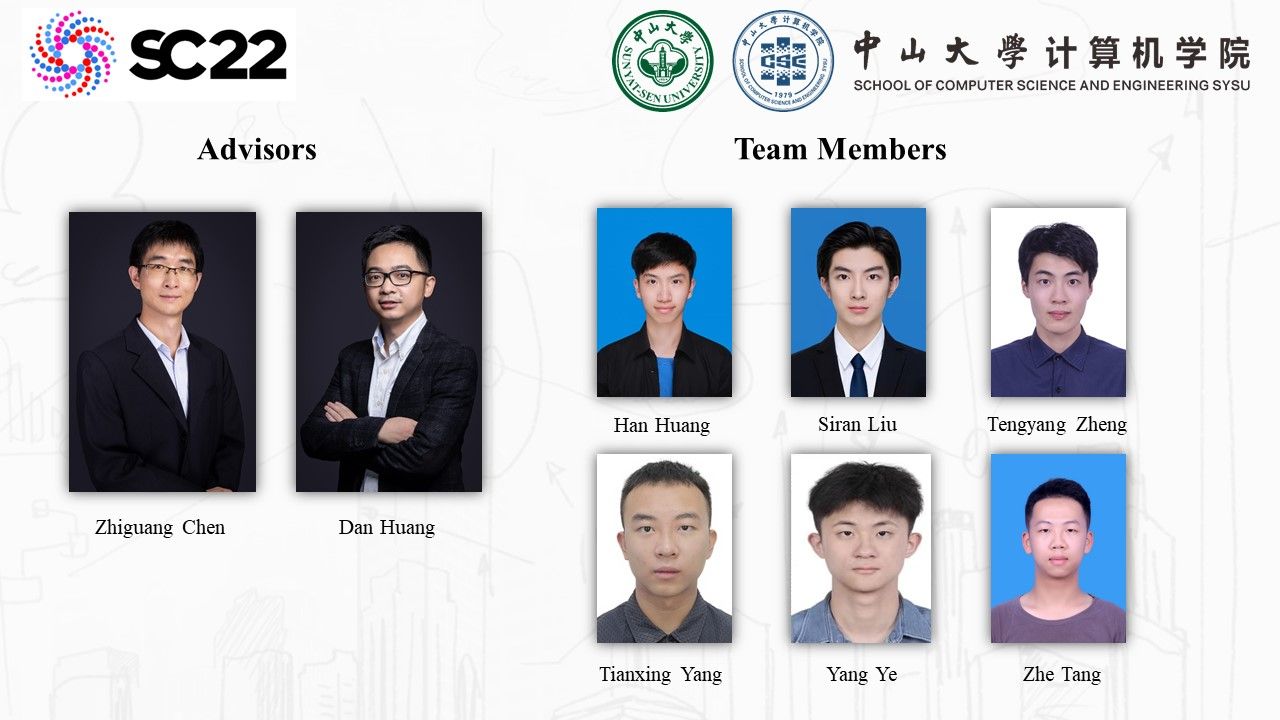 本次中大超算队“SYSU-SCC”由计算机学院本科生黄瀚、刘思然、唐喆、叶阳、杨天行和郑腾扬6位同学组成。在best365中国官方网站计算机学院院长助理、国家超算广州中心陈志广副主任,计算科学交叉研究中心黄聃副教授两位带队老师的悉心指导下,学生团队在本次竞赛最具挑战性的多领域应用优化环节,圆满完成了分子动力学应用LAMMPS和自适应N-S方程并行求解器PHASTA,并在极短的时间内出色地完成了压轴公布的神秘应用:地震模拟器SeisSol的优化实现以及上一届大会SC21的优秀论文“Productivity, Portability, Performance: Data-Centric Python”的论文复现挑战,展现了中大学子的综合实力。