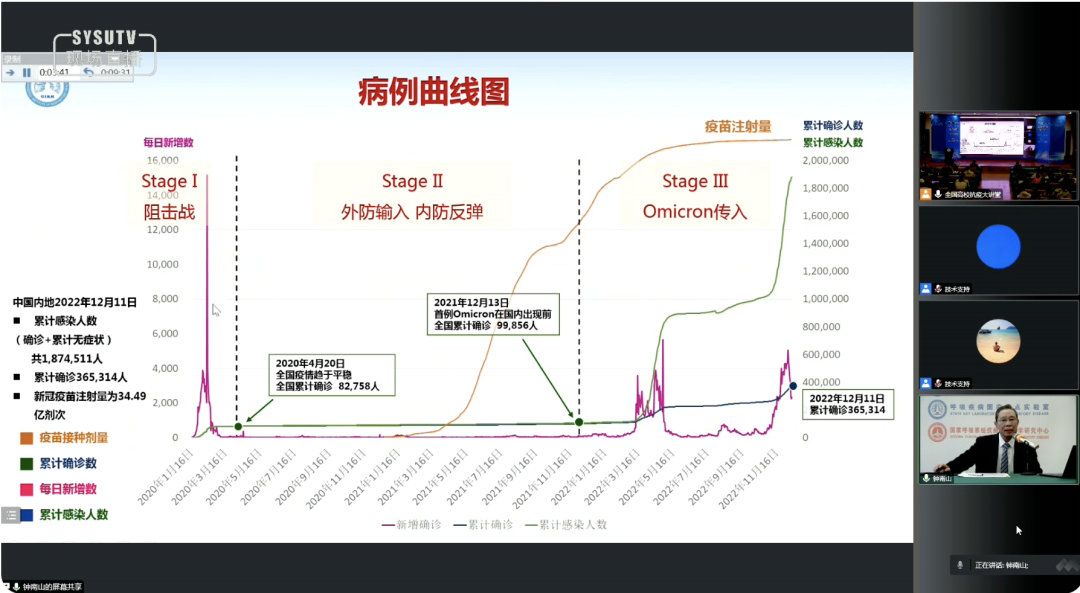 近两个小时的讲座,钟南山院士旁征博引,以深入浅出的语言和翔实的数据,总结了两年多来我国抗疫取得的成就,系统分析全国范围第二波奥密克戎疫情的特点,介绍奥密克戎的生物学特征和致病性,对如何加强个人防护提出了建议,并对大家关心的抗疫热点问题进行了解疑释惑。