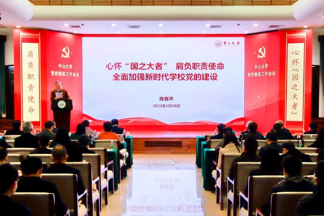 2022年1月18日,学校召开党的建设工作会议,会议主题是“心怀‘国之大者’,肩负职责使命,全面加强新时代学校党的建设”。会议深入学习贯彻习近平新时代中国特色社会主义思想,分析研判当前形势任务,研究部署全面推进学校党建工作,以高质量党建引领“双一流”大学建设。校党委书记陈春声作大会主题报告,校党委副书记、校长高松作总结讲话。