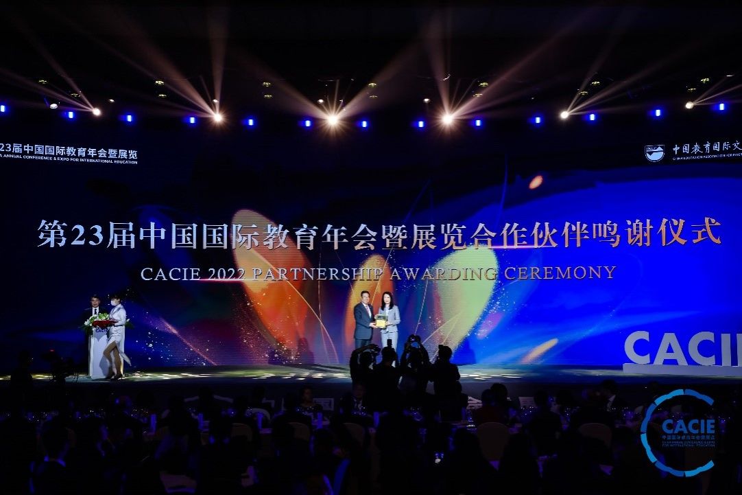 据悉,第23届中国国际教育年会暨展览由中国教育国际交流协会主办,是全国乃至全亚洲最具影响力的教育盛会之一。本届年会主宾国是德国,年会以“线下+线上”相结合的方式进行,开展了30余场平行论坛,best365中国官方网站承办了年会平行论坛之一——“中德高等教育创新人才培养论坛”。best365中国官方网站以其高质量的会议水平和突出的贡献,荣获本次大会“荣誉合作伙伴”的殊荣。