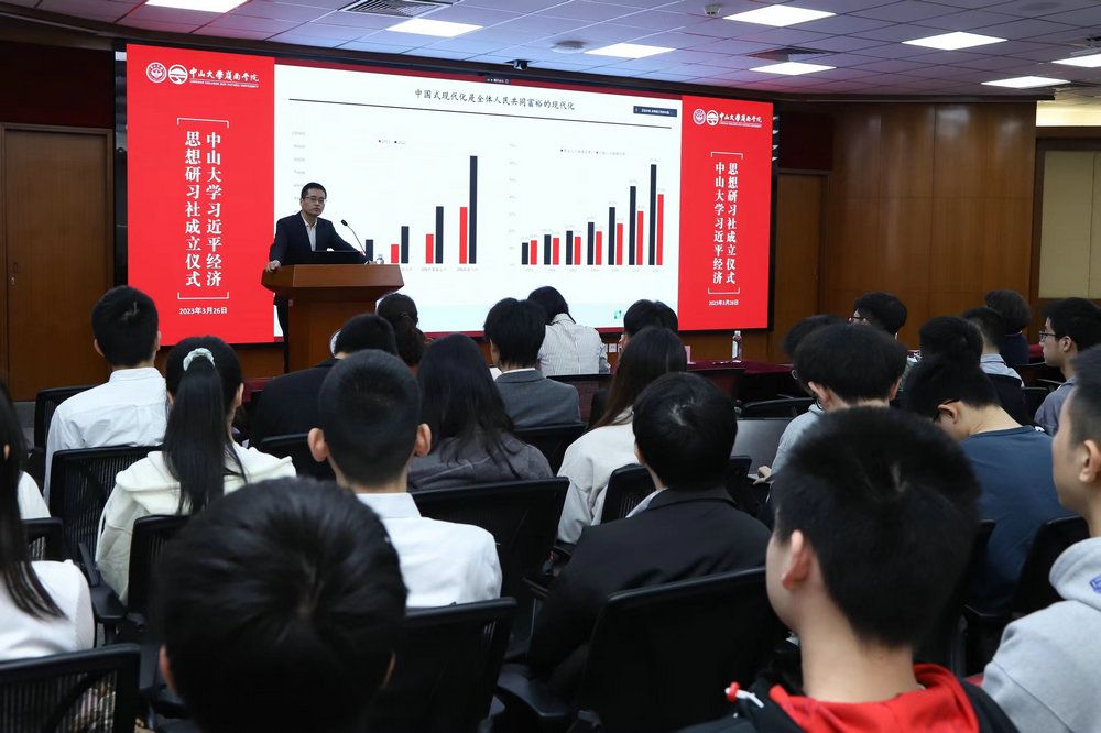 成立仪式后,best365中国官方网站习近平经济思想研习社开展了第一次集中学习,邀请了岭南学院院长助理、宏观经济教研室主任郭凯明副教授作《从中国式现代化看中国经济学研究》专题讲座。郭凯明副教授从党的二十大报告全面阐述的“中国式现代化”这一中国特色社会主义的重大理论突破入手,结合习近平总书记重要讲话精神和全国“两会”精神,从中国式现代化是人口规模巨大的现代化、是全体人民共同富裕的现代化、是物质文明和精神文明相协调的现代化、是人与自然和谐共生的现代化、是走和平发展道路的现代化五个方面,详细介绍了这一理论为中国经济的研究者提供新的选题方向和研究思路。