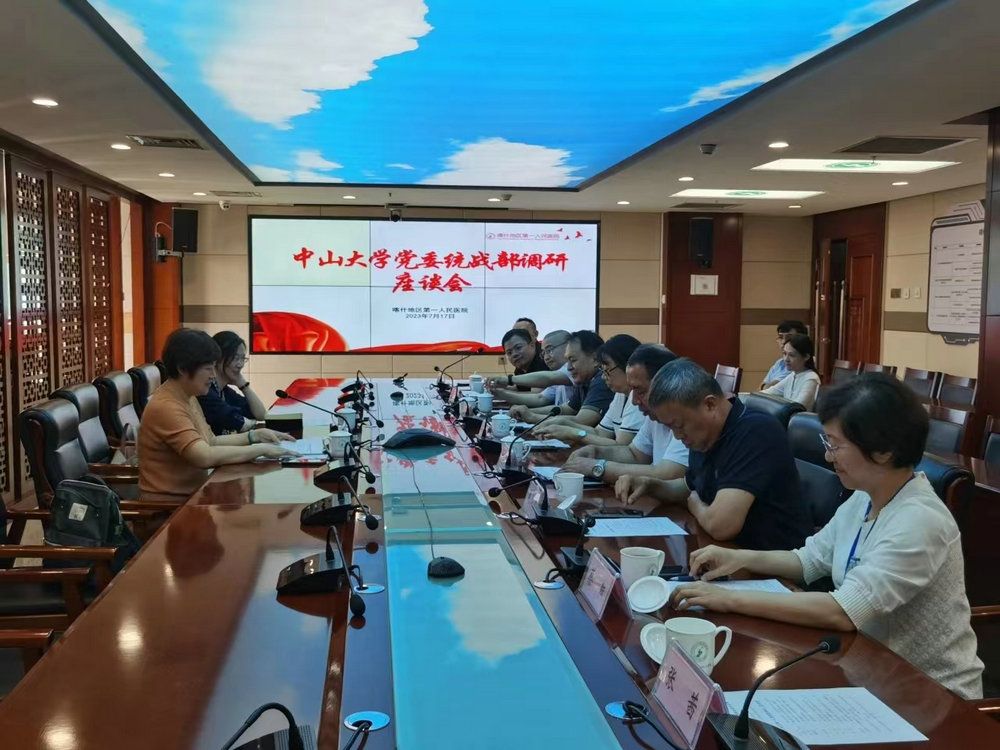 7月17日上午,吕雅璐常务副部长一行到喀地一院,先后走访了两位专家的宿舍及儿科与肝胆胰腺外科,了解专家们的工作和生活情况。随后与喀地一院相关领导召开了统战工作调研座谈会。会上,喀地一院副院长吴玉华首先代表医院党政班子对吕雅璐常务副部长一行的到访表示欢迎,并介绍了医院的建设情况。副院长艾则孜·吾买尔介绍了医院党外干部工作开展情况。广东援疆医疗队队长、临时党支部书记、孙逸仙纪念医院心内科党总支书记、喀地一院院长助理罗年桑教授介绍了援疆专家们在喀什开展理论学习及医疗、科研和教学工作的相关情况。蔡耘教授、陈捷教授作主题交流发言,分享了自己在喀地一院开展的主要工作及心得;两位教授所在的儿科和肝胆胰腺外科的科室主任也先后介绍了两位教授对科室工作的创新带动,对他们的突出贡献表示感谢。喀地一院冠心病一科主任、喀什地区政协委员、党外干部代表买买提艾力·阿布都可日木,援疆专家、附属第六医院肛肠外科鲜振宇主治医师等参加座谈。