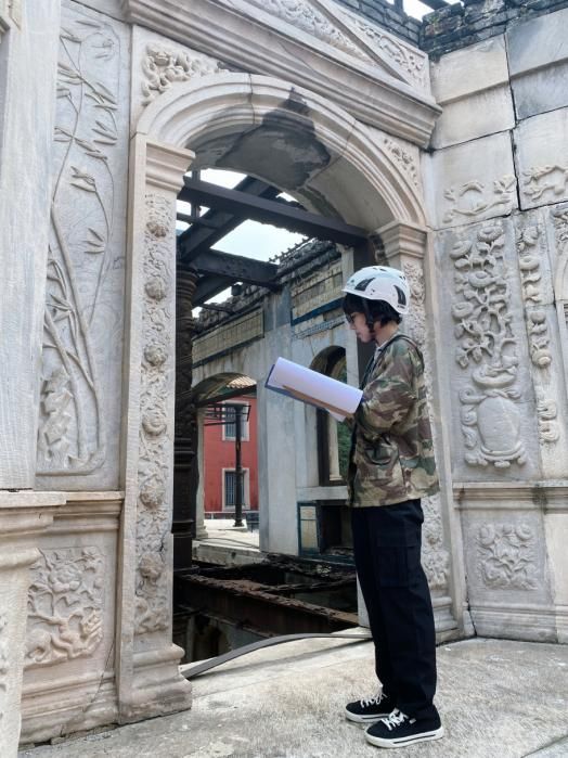 实习生黄琬淇记录建筑病害