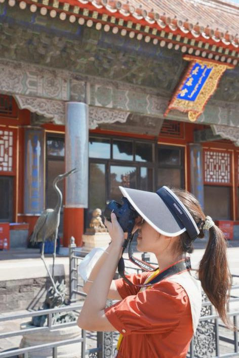实习生梁希悦进行古建筑摄影