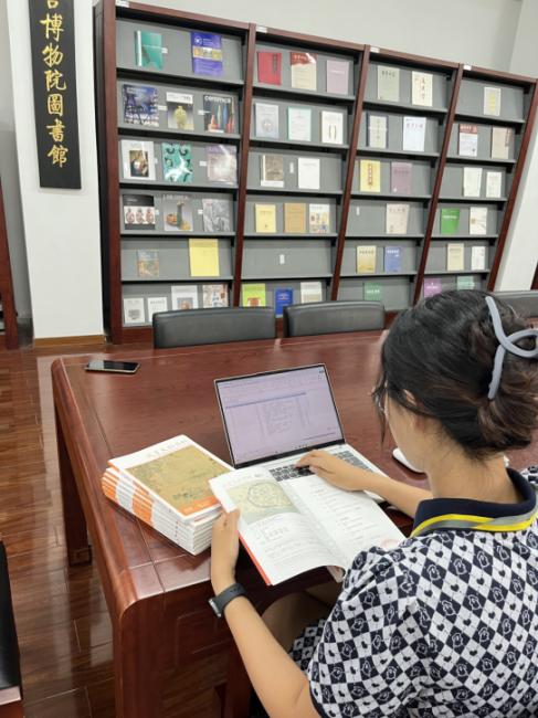 在图书馆,赵晨昕同学对开架杂志和平装书籍进行整理,在此过程中,了解到故宫博物院图书馆现有纸质、电子图书资源的整体情况和查询方式,学习到开架图书的借阅管理方法,参与到开架图书排架整理、期刊归库、故宫文物月刊及故宫学术季刊电子目录登记核对等工作。