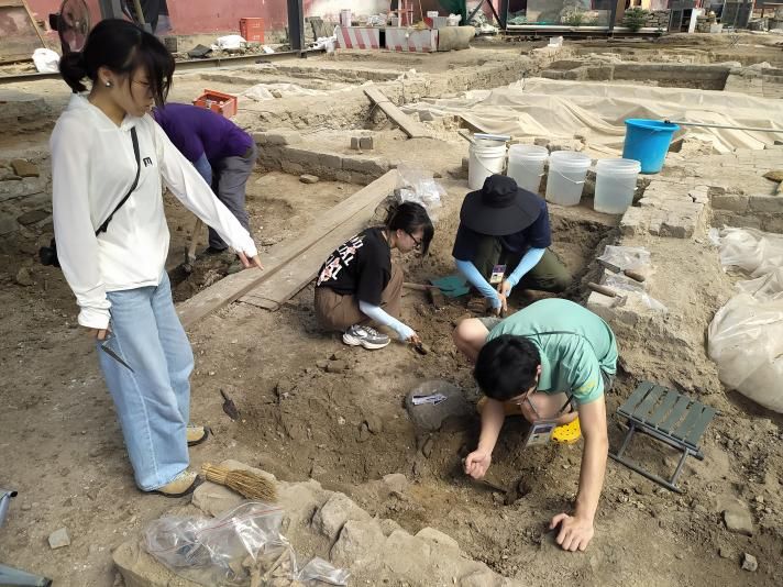 在考古部,宁逸风同学学习了大型宫殿建筑遗址的发掘技巧和相关工作规程,三维建模和全站仪等专业技术,还学习了库房整理、画图、文物摄影......他说,最为重要的,是学到了很多慎思笃行的道理。