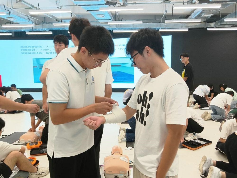 中大新闻网讯(通讯员蒋梦婷、黄嘉仪)9月9日是第24个世界急救日。为进一步提升大学生的急救意识和急救能力,医学院在深圳校区医学园开展了以“数字赋能、救在身边”为主题的世界急救日急救培训活动。活动包含模拟考站参观、CPRD(心肺复苏与自动体外除颤)理论讲解、急救包扎理论讲解、CPRD实操培训以及CPRD实操考核等内容。