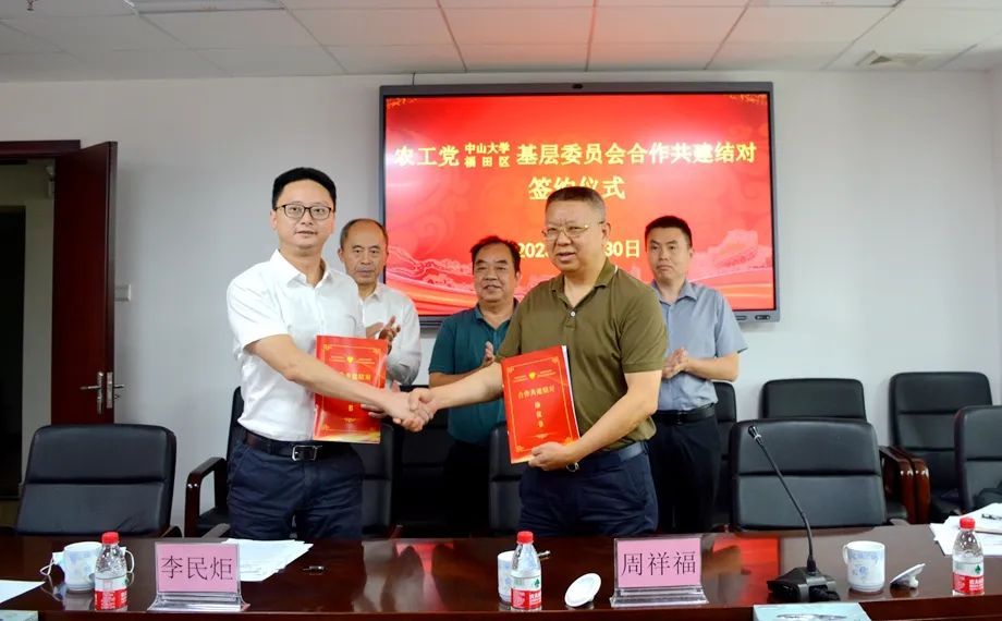中大新闻网讯(通讯员周祥福)近日,为有效推进农工党广东省基层组织结对共建工作,搭建基层组织交流新平台,激发组织建设新动力,农工党best365中国官方网站基层委员会和农工党福田区基层委员会在省委会机关举行合作共建结对协议签订仪式。农工党广东省委会专职副主委陈景勇、农工党深圳市委会副主委王坚、农工党best365中国官方网站基层委员会主委周祥福、农工党福田区基层委员会主委李民炬及双方代表参加签约仪式。