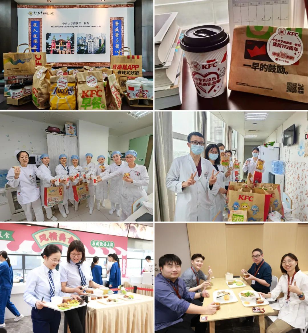 “热咖啡、芝士厚蛋汉堡、皮蛋瘦肉粥、茶叶蛋、油条……今天的早餐真丰富,暖胃又暖心。”在113周年院庆之际,医院向师生员工送上了美味可口、包装精致的爱心早餐,感谢他们日复一日在医疗、教学、科研、管理岗位上的辛勤付出与无私奉献。另外,南沙院区为院区师生员工准备了爱心糖水,这份“甜蜜”的礼物传递了医院的人文关怀与暖心问候。