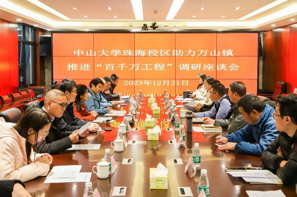 根据珠海市“百千万工程”指挥部办公室印发的《珠海市高校联区镇助力“百县千镇万村高质量发展工程”行动工作方案(2023-2027年)》要求,各在珠高校与珠海市各区镇结对共建,推动教学科研成果更好转化为区镇村高质量发展的强劲动力。根据安排,我校珠海校区与珠海市万山镇结对。我校将充分发挥综合性高校的人才和智力优势,结合万山所需、中大所能,在海洋经济、海岛旅游、城乡规划等方面为万山镇提供智力支持,助力珠海市“百千万工程”行动落细落实。