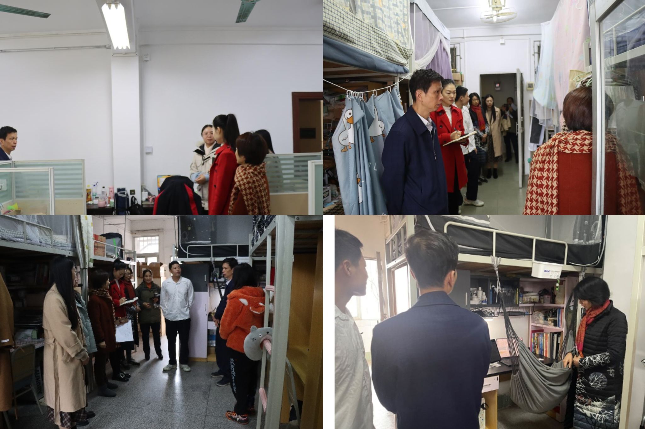 检查组在研究生自习室和学生宿舍检查