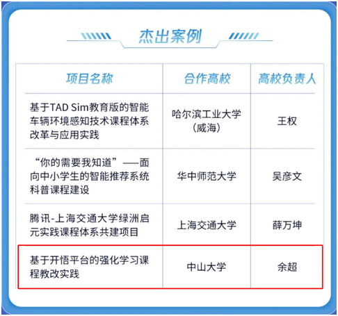 中大新闻网讯(通讯员吴晓鸿)为落实教育部产学合作协同育人项目高质量发展的要求,展示项目实施过程中产生的典型做法和案例,促进示范性探索,由教育部产学协同育人专家组专家、教育部教学指导委员会专家以及腾讯公司行业专家组成的评审专家组开展了2023年度“教育部-腾讯产学合作协同育人”优秀及杰出案例评选工作,从符合参评要求的项目中评选出4项杰出案例和6项优秀案例。计算机学院余超副教授的《基于开悟平台的强化学习课程教改实践》项目入选2023年度“教育部-腾讯产学合作协同育人”杰出案例。