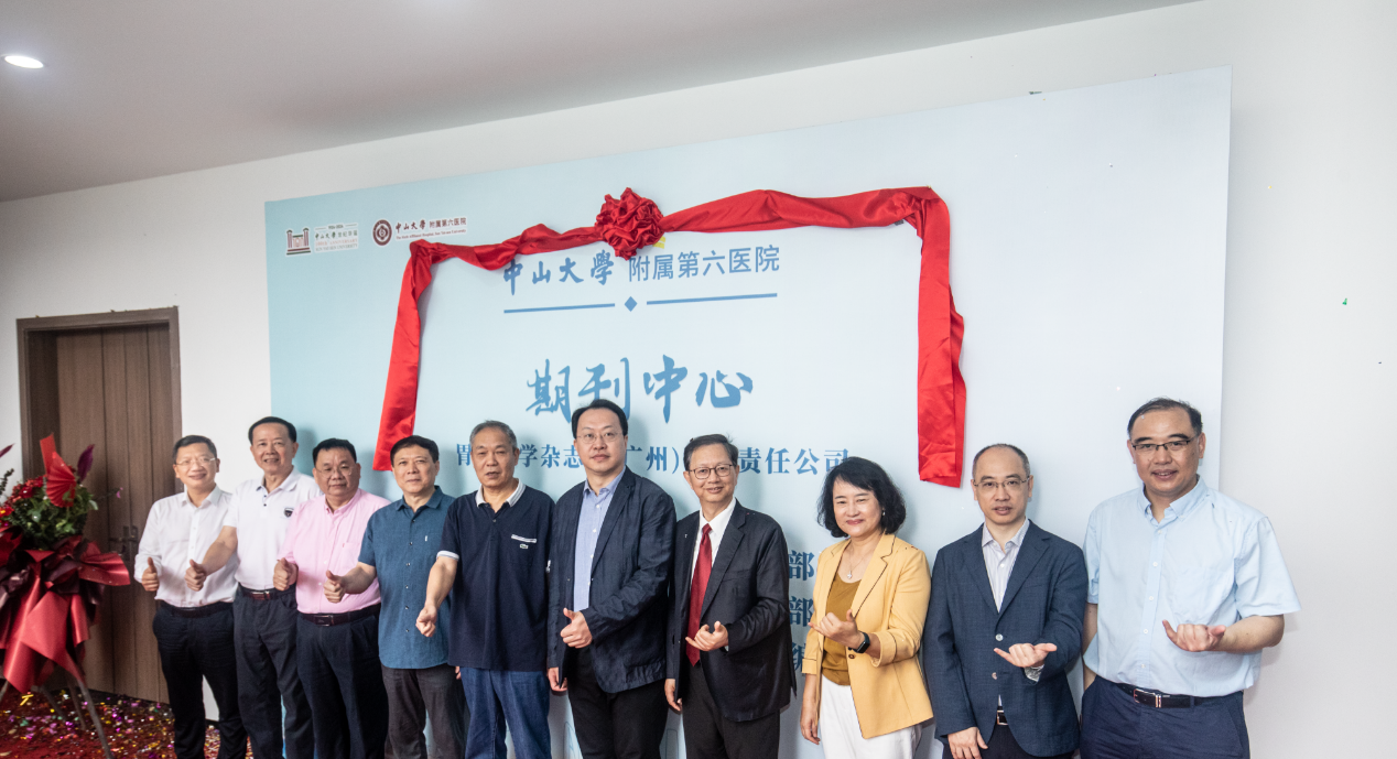 当天,附属第六医院还举行了期刊中心办公新址揭牌仪式。广东省委宣传部出版处二级调研员陈建新,广东省科技厅实验室与平台基地处四级调研员彭丹,广州国际生物岛管委会党委书记、主任陈超,中华医学会杂志社副社长刘冰,附属第六医院党政领导班子成员及各刊主编出席仪式。落地生物岛后,期刊中心将依托生物岛内浓厚的科创氛围,锚定成果转化,创新办刊模式,打造学术与转化双平台,实现期刊由“书架”向“货架”的转变。同时与岛上高新医药企业加强联系,拓宽期刊经营业务,进一步提升期刊市场经营能力,积极发挥科技期刊在创新驱动发展战略中的重要支撑作用,努力提升国际传播力和学术影响力。