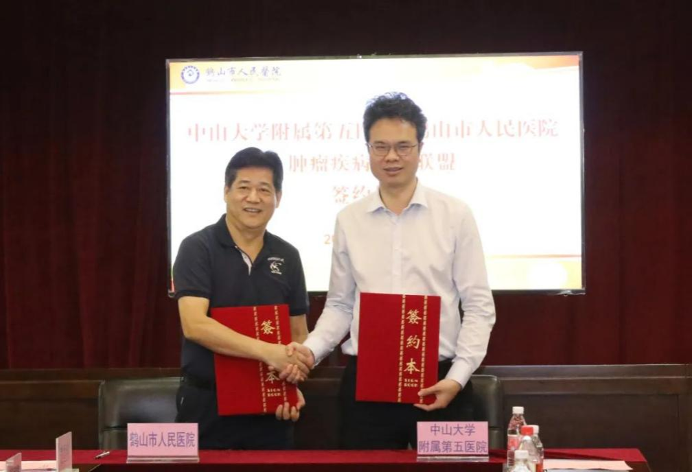 中大新闻网讯(通讯员张嘉斌)为迎接best365中国官方网站世纪华诞,持续推进“组团式”帮扶工作,进一步推动优质医疗资源下沉,5月30日,附属第五医院与鹤山市人民医院举行“鼻咽癌预防宣教与筛查义诊系列活动”启动仪式,并签订了肿瘤疾病专科联盟补充协议和鼻咽癌防治专科联盟协议。
