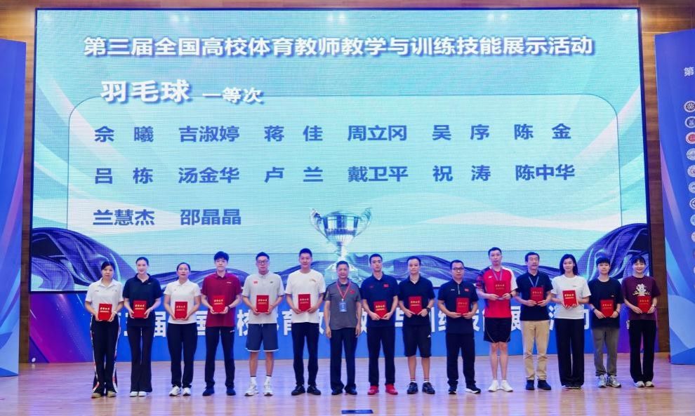 中大新闻网讯(通讯员姚颂华)10月10日-12日,由全国高等学校体育教学指导委员会主办、全国高等学校体育教学指导委员会公共体育学科组执行、华南理工大学承办的第三届全国高校体育教师教学与训练技能展示活动圆满完成。作为全国最高水平高校体育教师教学与训练技能展示的平台,来自全国31个省市自治区的103所知名高等院校的214名精英体育教师,怀揣着对体育教育事业的热忱与卓越的教学技能,同台竞技,呈现了一场精彩纷呈的技能比拼。我校派出羽毛球国家健将周立冈老师参赛,荣获一等奖!本次领队为体育部武东海教授。