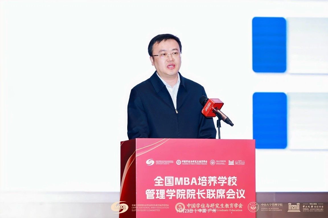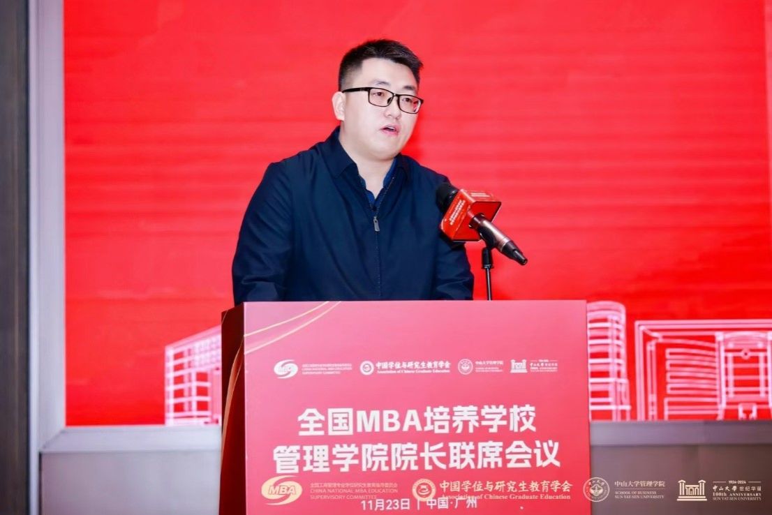 教育部学位管理与研究生教育司培养质量处调研员王亮在致辞中表示,面对新形势、新要求,中国MBA教育要聚焦学位法的落实,推进MBA教育创新发展;聚焦回应国家需求,创新人才培养模式;聚焦AI赋能,提升培养能力;聚焦质量保障,统筹推进规模扩大与内涵建设相协调。