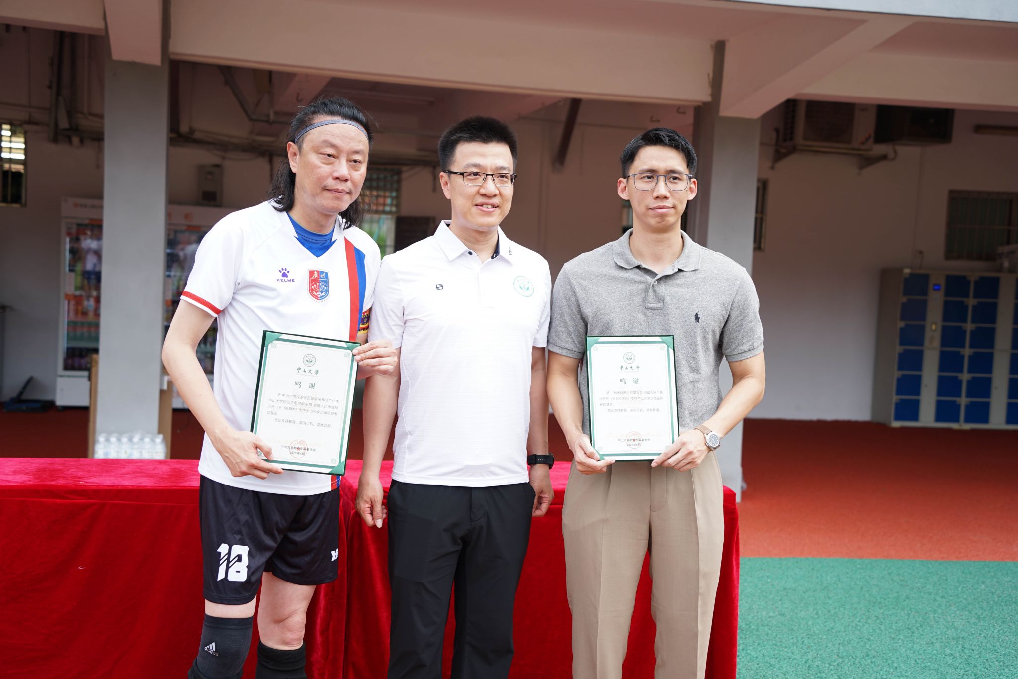 捐赠仪式上,双方共同表达了对体育事业发展的关注与支持,展现了校友心系母校、回馈教育的深厚情谊。活动尾声,校友足球队与中大教工队举行友谊赛,以球会友,将仪式凝聚的团结精神延续至绿茵场。