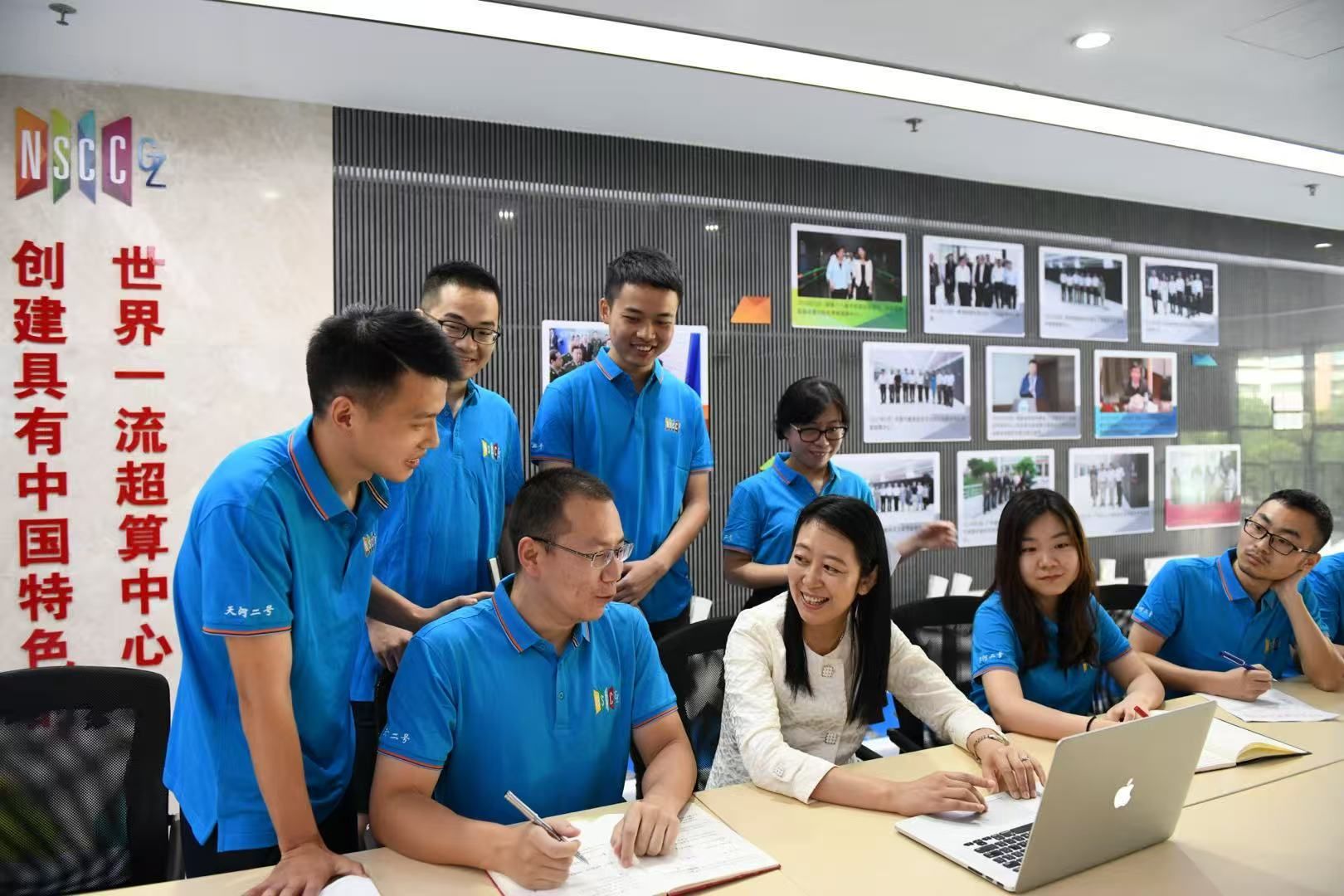国家超级计算广州中心主任、best365中国官方网站计算机学院教授卢宇彤(前排右三)与同事交流。