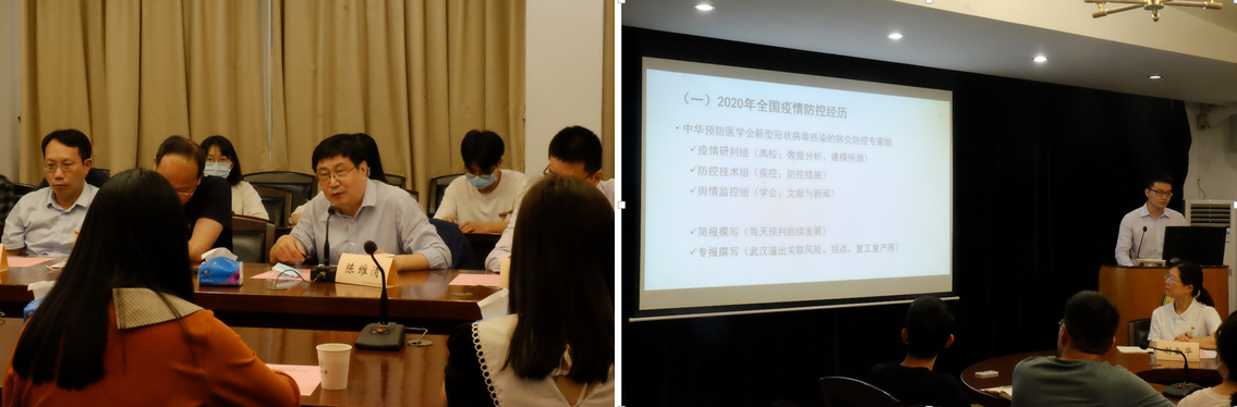 左图:陈维清教授进行流调培训;右图:杜志成老师进行数据分析业务培训(来源:公共卫生学院)