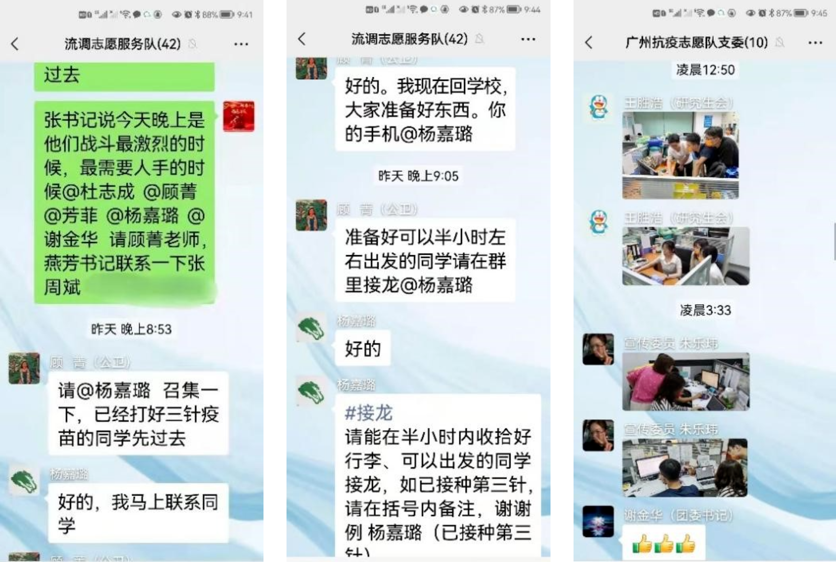 “疫情防控任务很重,能否现在就派一批志愿者过来?”3月16日晚上8:53分,学院党委书记范瑞泉接到广州市疾病预防控制中心党委书记张周斌的紧急电话。晚上9:00,在微信群里,征集第一批前往的通知发出,领队顾菁教授和临时党支部书记杨嘉璐同学首先响应。