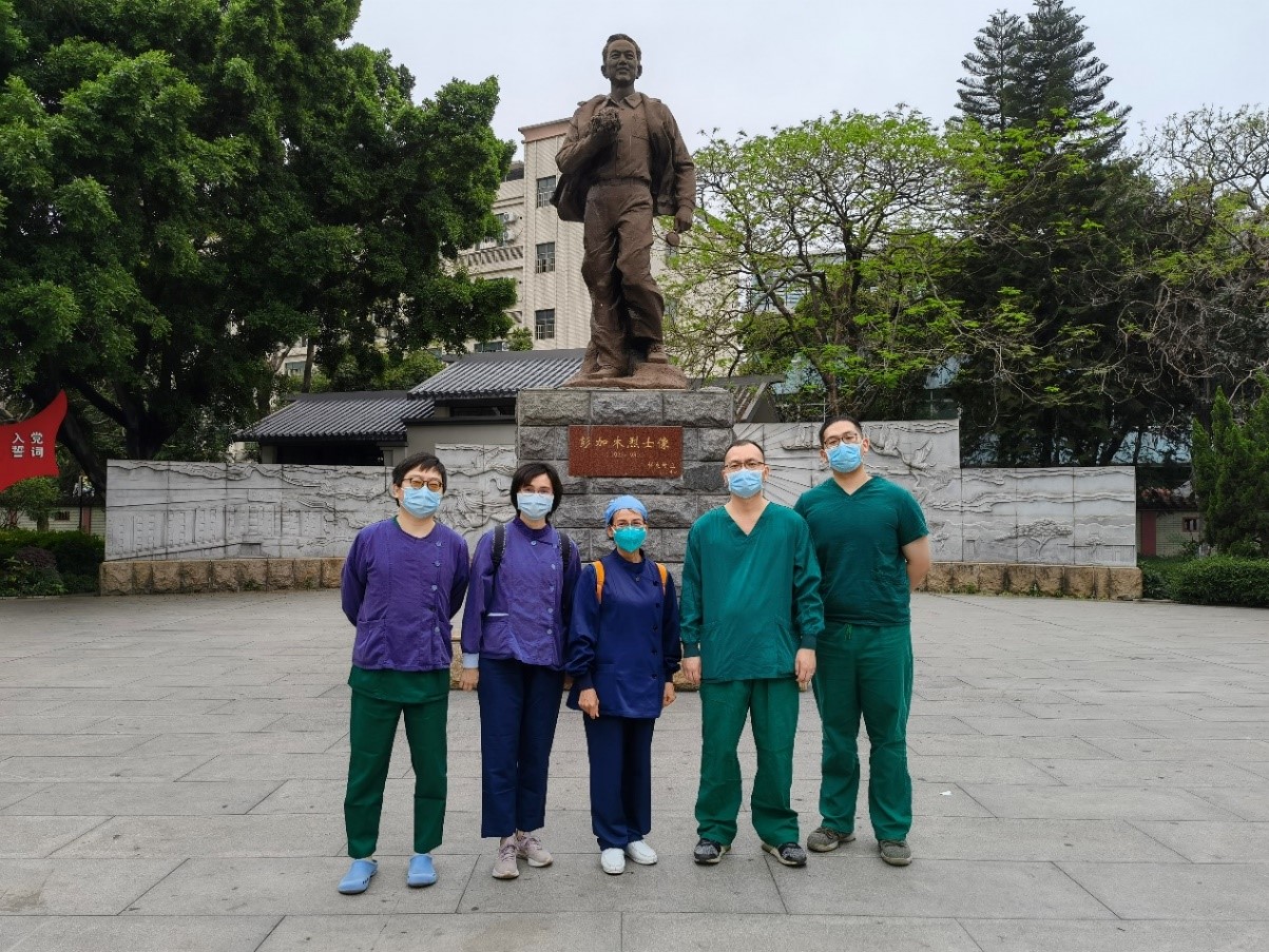 何瑶轩(左一)与同事在彭加木公园合影(来源:肿瘤防治中心)