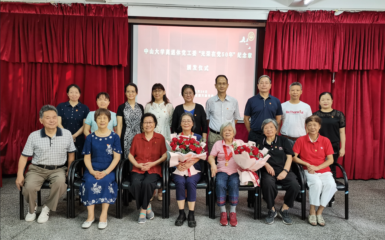 中大新闻网广州7月1日电(通讯员陈颖青)6月28日上午,离退休党工委在南校园老年人活动中心举行2022年“光荣在党50年”纪念章颁发仪式暨“我看中国特色社会主义新时代”“教育这十年”专题畅谈交流会。纪念章获得者代表,离退休党工委委员,各党支部书记、支委代表及离退休工作处全体工作人员参加会议。颁发仪式由离退休党工委副书记蓝国秋主持。