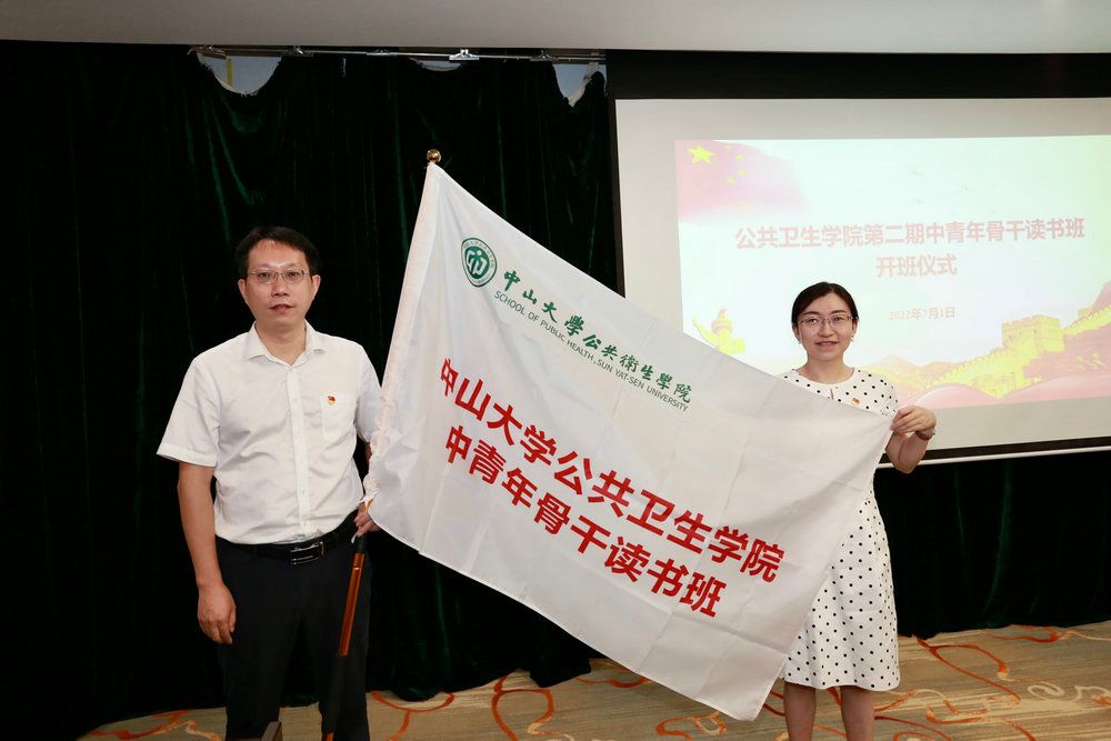 夏敏院长为中青年骨干读书班授班旗(来源:公共卫生学院)