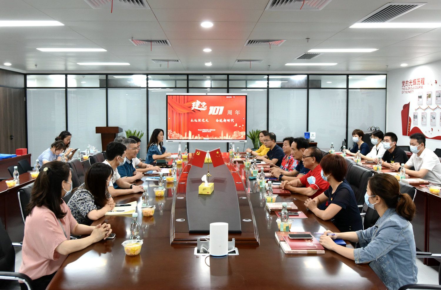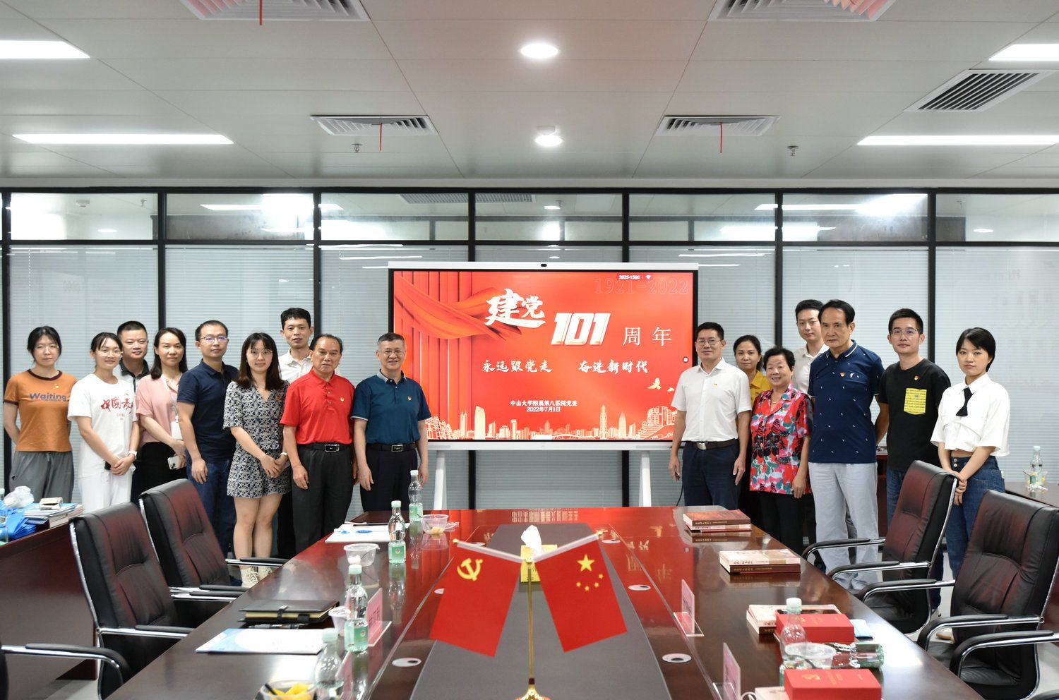 中大新闻网广州7月5日电(通讯员佟艳婷)7月1日,附属第八医院党委举行庆祝建党101周年座谈会,为2022年“光荣在党50年”老党员颁发纪念章,迎接新党员宣誓入党。医院党委书记张远权与党员座谈交流,回顾中国共产党团结带领中国人民不懈奋斗的光辉历程,展望医院事业发展的美好前景。党委委员、副院长林汉利主持座谈会。