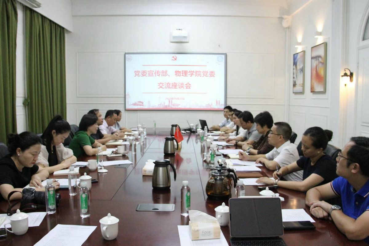 中大新闻网广州9月26日电(记者满意)为了更好地服务院系宣传思想工作,进一步提高学校宣传思想工作质量,9月22日,党委宣传部到物理学院开展工作调研。围绕宣传思想工作的重点、要点和难点,进行了充分的交流和研讨。双方就学院历史、学科优势、重大科研成果和平台建设的宣传推广,进行了现场策划研讨,并确立下一步工作机制。