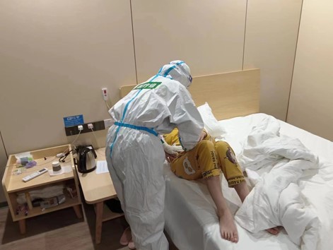 看到小武妈妈愁眉不展,精神心理科医生吴秀华给她进行了心理辅导。小武妈妈着抹着眼泪激动地说:“医生,谢谢你们,感谢你们送来礼物,谢谢你们给我耐心地讲解病情,现在我终于放心啦!” 在方舱医疗队的悉心照料下,小武情况稳定,小伍妈妈入院时的咳嗽咳痰症状也逐日减轻。
