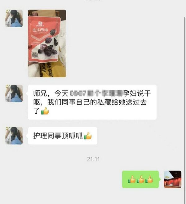 护理部护士宋理送西梅微信工作群截图(来源:附属第三医院)