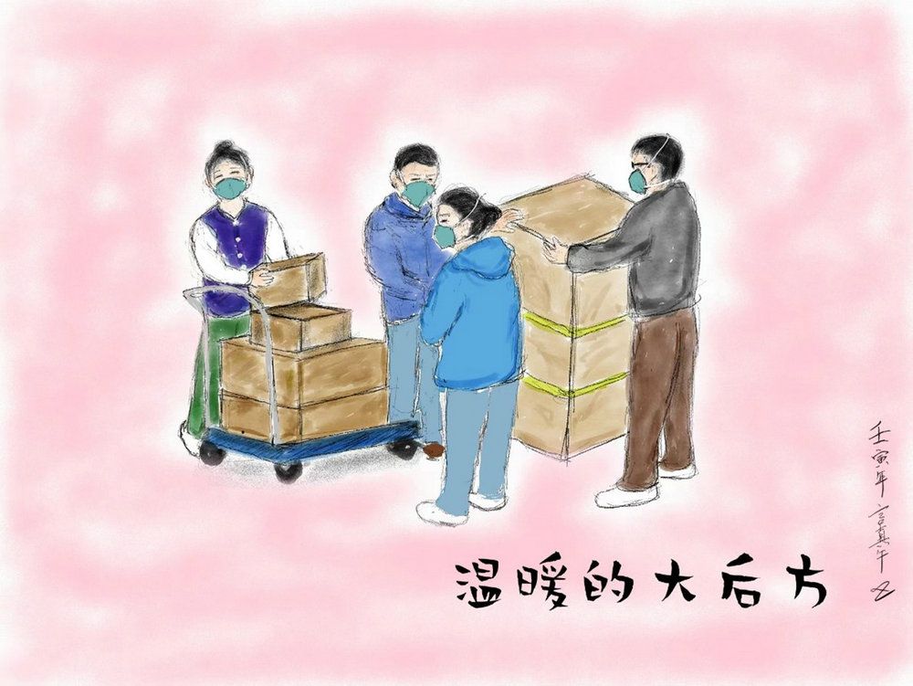 温暖的大后方(绘图:附属第三医院感染科许镇)