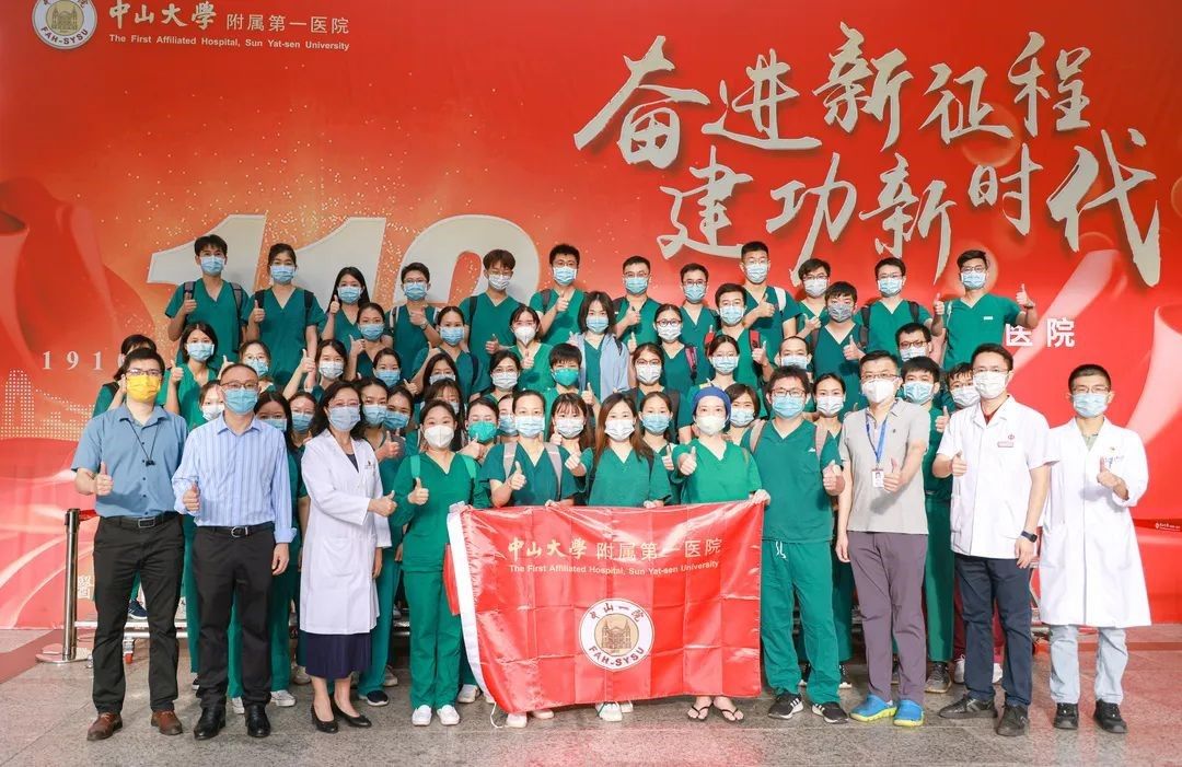 中山一院50人核酸采样医疗队整装待发,赶赴中大南校园,医务处刘大钺处长、肖良成副处长参加出发仪式