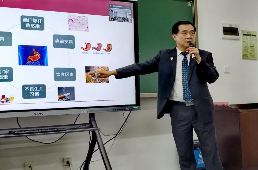 何裕隆院长以“常见肠胃疾病与消化保健”为题,以我国胃癌高发地区居民的饮食习惯为切入点,指出饮食因素、不良生活习惯、幽门螺旋杆菌感染和家族性遗传等胃癌高危因素,介绍了目前预防和治疗胃癌和降低胃癌复发的主要医疗技术手段。他提醒大家一定要养成良好的生活习惯,注意科学预防肠胃病,适时进行胃镜检查,及早排除潜在风险。