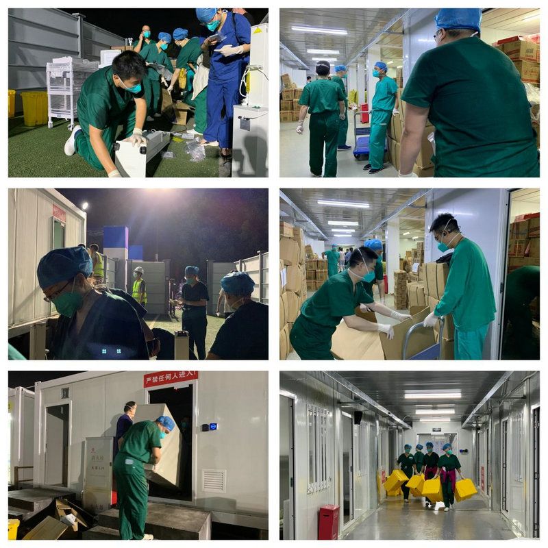 医护人员深夜布置方舱医院