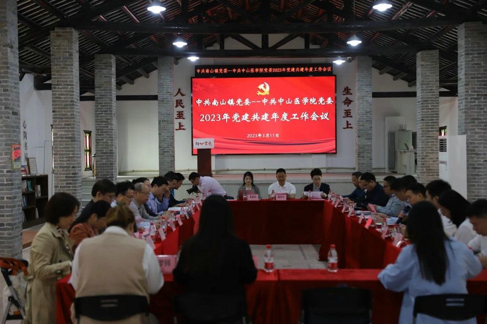 中大新闻网广州3月17日电(通讯员刘梦圆)为进一步贯彻落实党的二十大精神,深化党建共建合作,助力乡村振兴,3月11日上午,中山医学院党委书记张琪带队赴南山镇初心学堂与南山镇党委开展2023年党建共建年度工作会议。三水区委组织部副部长李强、南山镇党委书记朱伟伟出席会议,南山镇党委委员、团委书记黄恒建主持会议,中山医学院党政领导班子、党委委员及双方相关单位人员共25人参加会议。