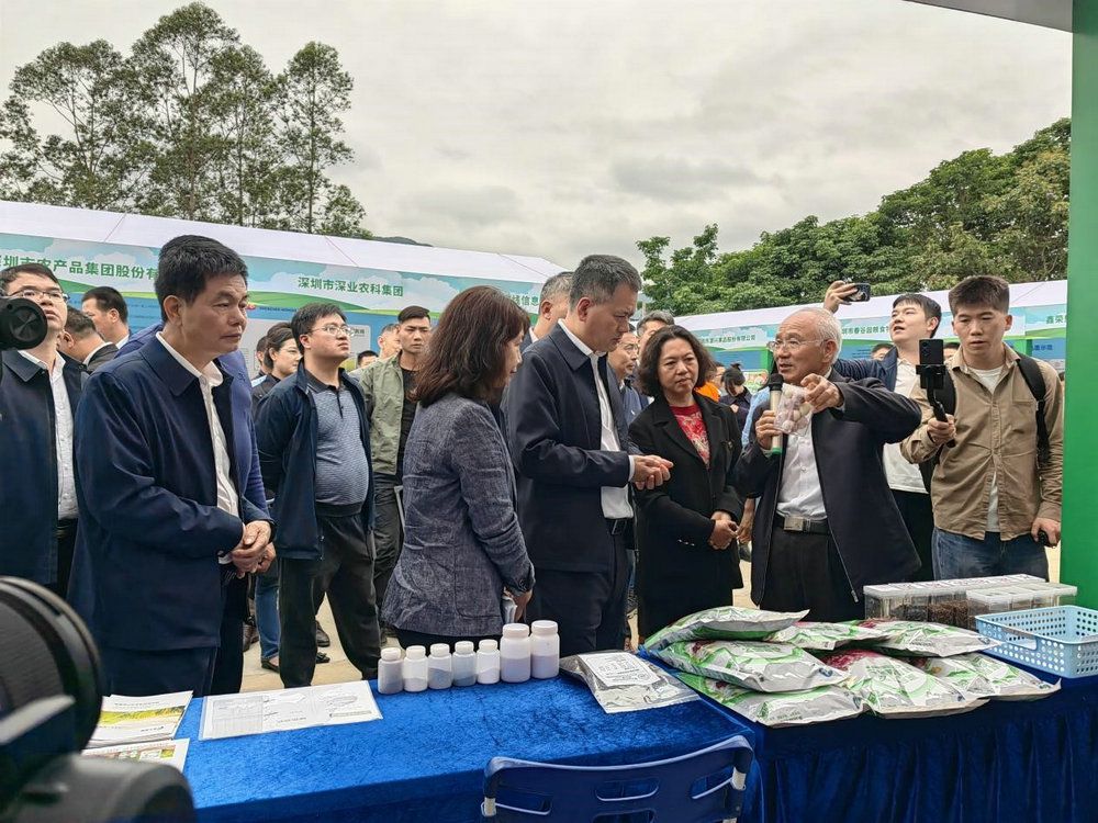 陈景光副教授和魏蜜助理教授展示了“水稻重要种质资源”和“生物菌肥”相关前沿技术和产品,引起现场参会单位的浓厚兴趣。学院老师与广东省农业农村厅、深圳市市场监督管理局、深圳市农业科技促进中心等单位领导,针对学院的发展情况以及种业、耕地保护、化肥等关键农业生产问题进行了交流。