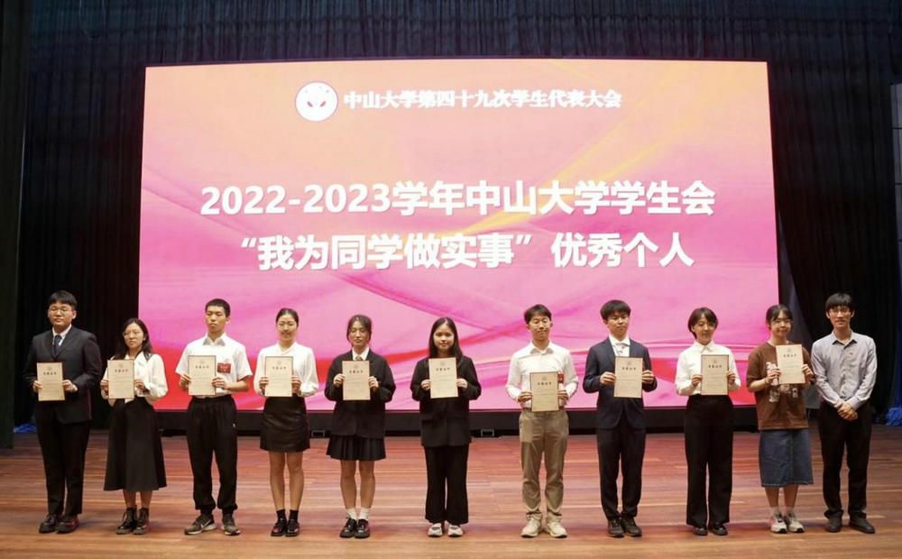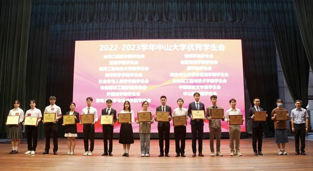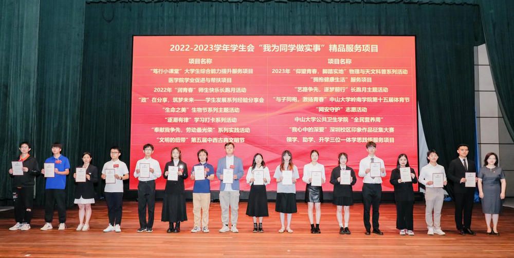 会上,广东省学生联合会代表李炫志同学宣读关于表彰2022-2023年度“广东省优秀学生会(研究生会)”“广东省优秀学生骨干”的决定,校团委副书记、best365中国官方网站学生会秘书长林炜双宣读关于表彰2022-2023年度best365中国官方网站优秀学生会、优秀学生会指导老师、优秀学生会骨干和学生会“我为同学做实事”精品服务项目、优秀个人的决定。获奖师生代表依次上台领奖。