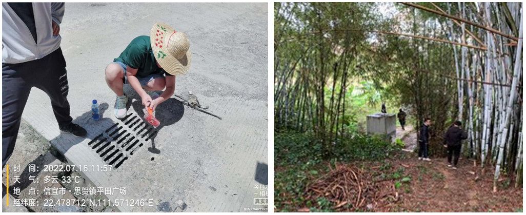在管网和排污口的摸查工作中,秉承着“有口皆查,有水皆测”的原则,团队成员钻树林、下水沟、撬井盖、找排口,对17个镇级污水处理厂中98个管网关键节点、百余个排口深入调研,提出管网修复,精准扩网等建议。他们最常见的形象是顶着烈日,头戴草帽,手拿榔头和撬棍。