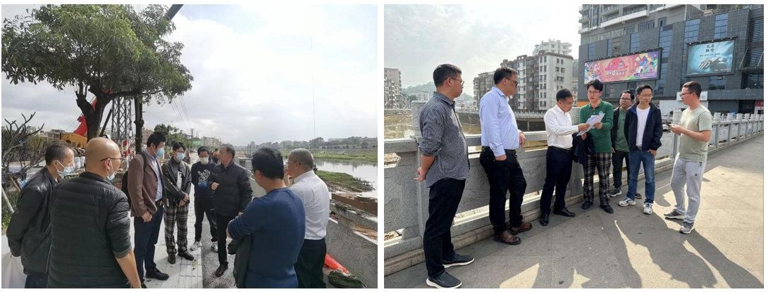 调研管网建设(左)市区水环境治理工程项目现场调研(右)