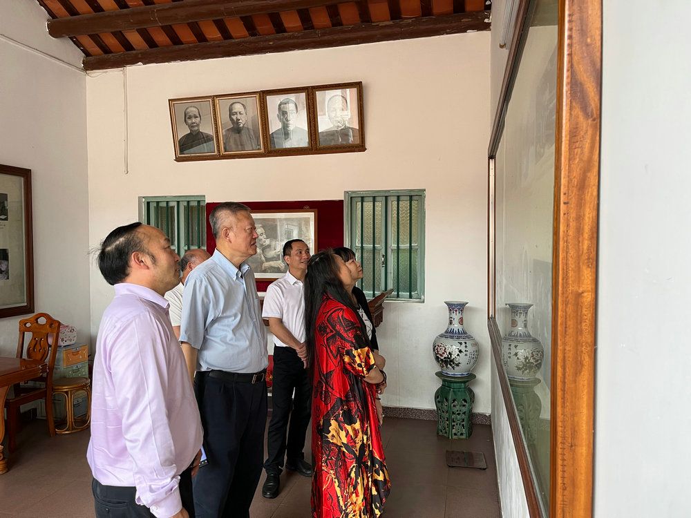 陈春声书记一行参观陈洪故居(图片来源:党委办公室)