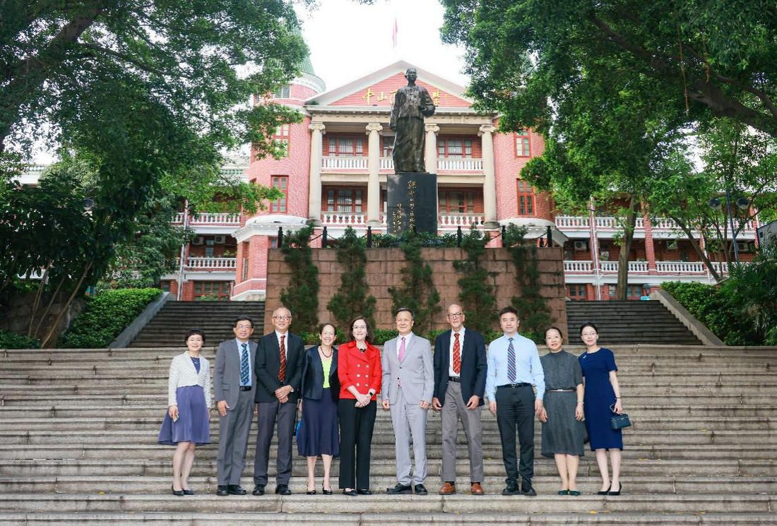CMB代表团与我校代表在中山铜像前合影