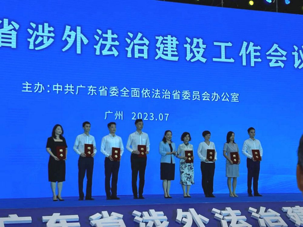 法学院院长张亮教授(左四)作为广东省涉外法治人才库代表接受聘书