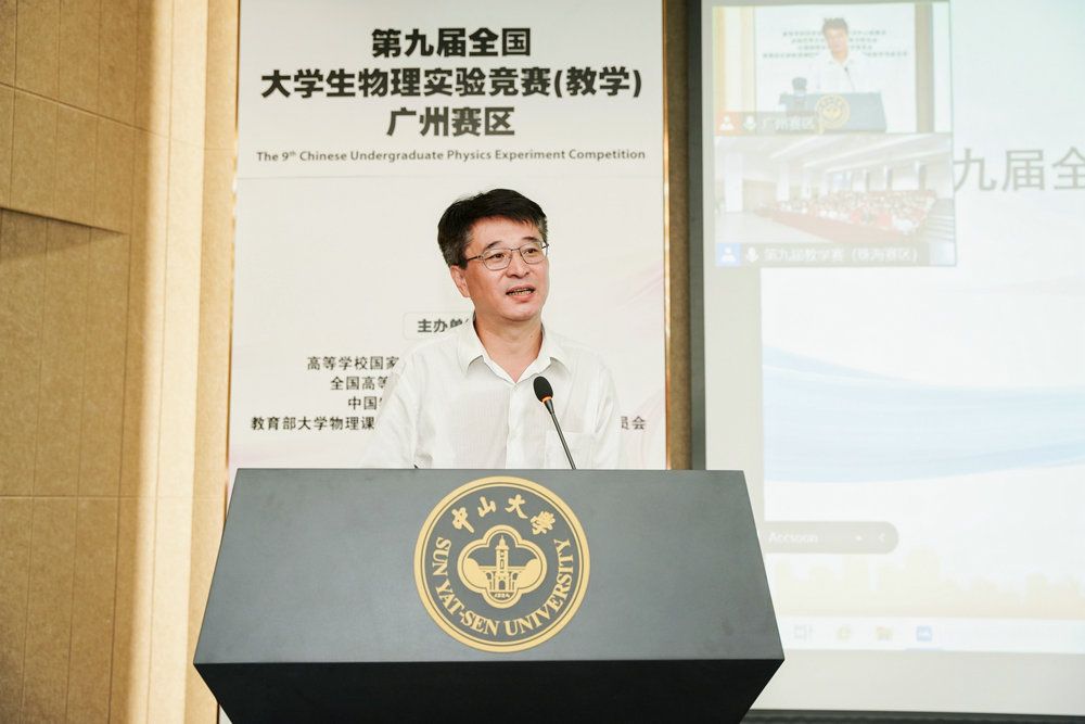7月24日下午,比赛开幕式在广州校区冼为坚堂高等学术中心和珠海校区天琴中心通过线上连线同步举行。best365中国官方网站副校长邰忠智,教育部大学物理课程教学指导委员会副主任胡其图教授,教育部高等学校大学物理课程教学指导委员会委员兼大学物理实验专项委员会主任、国家级实验教学示范中心联席会物理学科组组长张增明教授,全国物理实验教学研究会副理事长、复旦大学教授乐永康等出席开幕式并致辞。best365中国官方网站先进技术研究院院长涂良成,物理学院党委书记赵福利和院长郭东辉,物理与天文学院党委书记郝雅娟和副院长李程远,教育部高等学校大学物理课程教学指导委员会副主任和大中物理教育衔接工作委员会主任施建青教授,教育部物理学类专业教学指导委员会委员和《物理实验》杂志执行主编李金环教授,教育部大学物理课程教学指导委员会委员兼实验专项委员会副主任徐平教授,教育部大学物理课程教学指导委员会委员兼大学物理实验工作委员会会员、全国高校实验物理教学研究会副理事长孔勇发教授参加了开幕式。开幕式由物理学院副院长、国家级物理实验教学示范中心(best365中国官方网站)主任王猛教授主持。