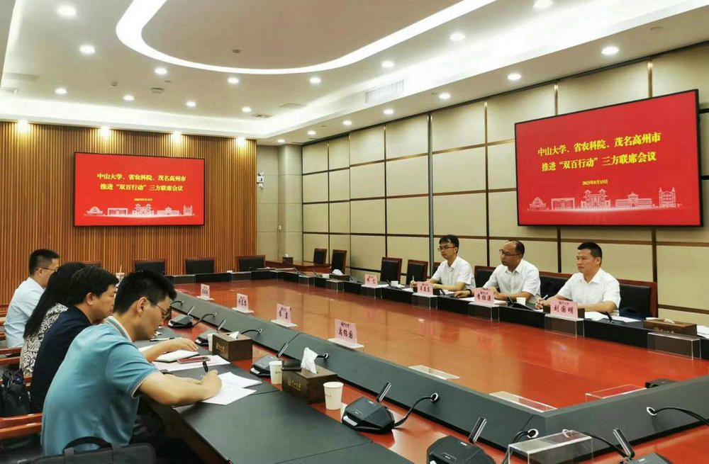座谈会后,我校与省农科院、高州市举行了联席会议,三方围绕共建项目、条件保障、实施步骤和工作机制等内容深入研讨、交换意见,达成诸多的共识,点燃共同的热情,为推进“双百行动”开局起步奠定了坚实基础。