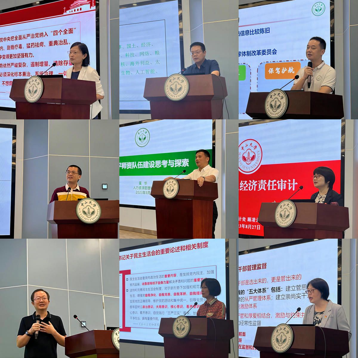 根据新上岗中层领导干部的履职需求,培训班还邀请了校纪委副书记吴长征,党委保卫部部长、党委保卫处处长岑立全,发展规划办公室规划与学科建设处处长、物理与天文学院教授练军想,教务部主任兼教务管理处处长陈省平,人力资源管理处处长、党委组织部副部长莫华,审计处处长、机关党委常务副书记顾凌云,网络与信息中心主任何海涛,党委组织部副部长刘洁予、潘蓉等学校多名职能部门负责人,就相关业务专题开讲交流,涉及人才培养、学科建设、发展规划、人事人才、干部管理与监督、经济责任审计、党风廉政、安全稳定及舆情应对等,既有政策解读、制度学习、工作指引,也有纪律教育、安全教育、警示教育,通过详实的数据图表分析和生动鲜活的案例分享,帮助参训学员进一步提高政治站位,提升政治素养和履职能力。