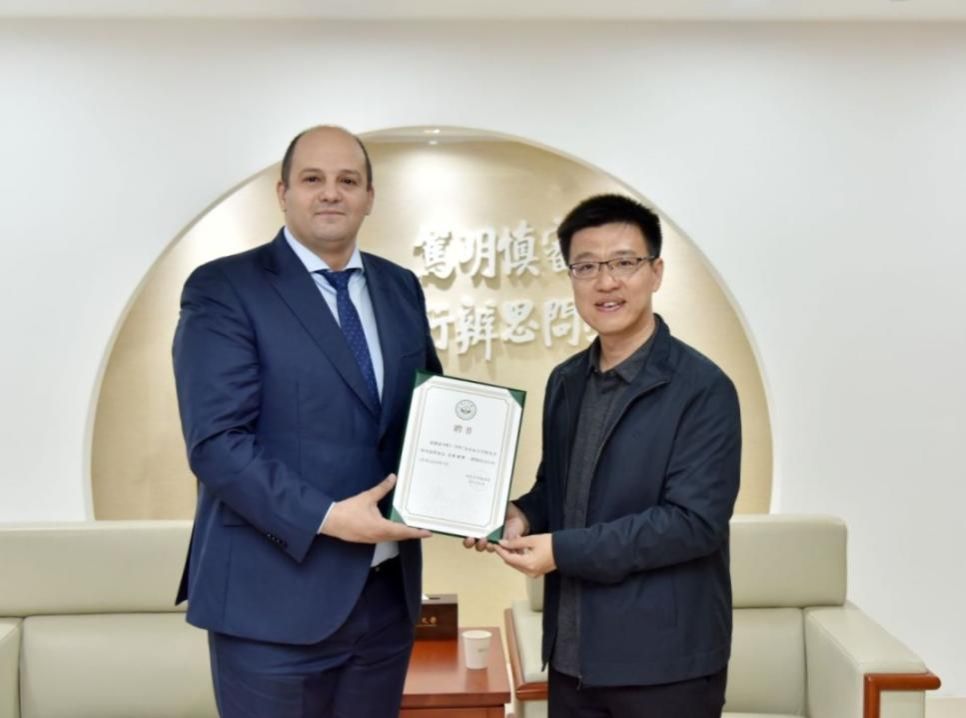 谢湜副校长向纳赛尔博士颁发名誉理事证书