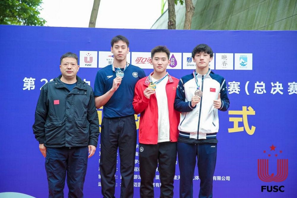 周敏行(右二)甲组男子50米仰泳颁奖现场
