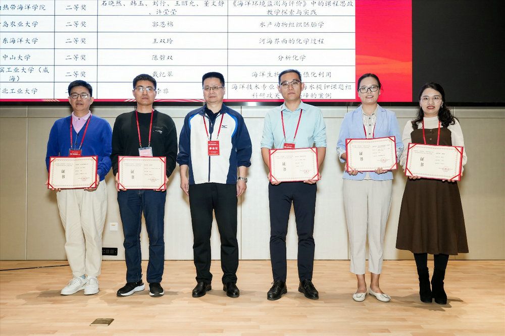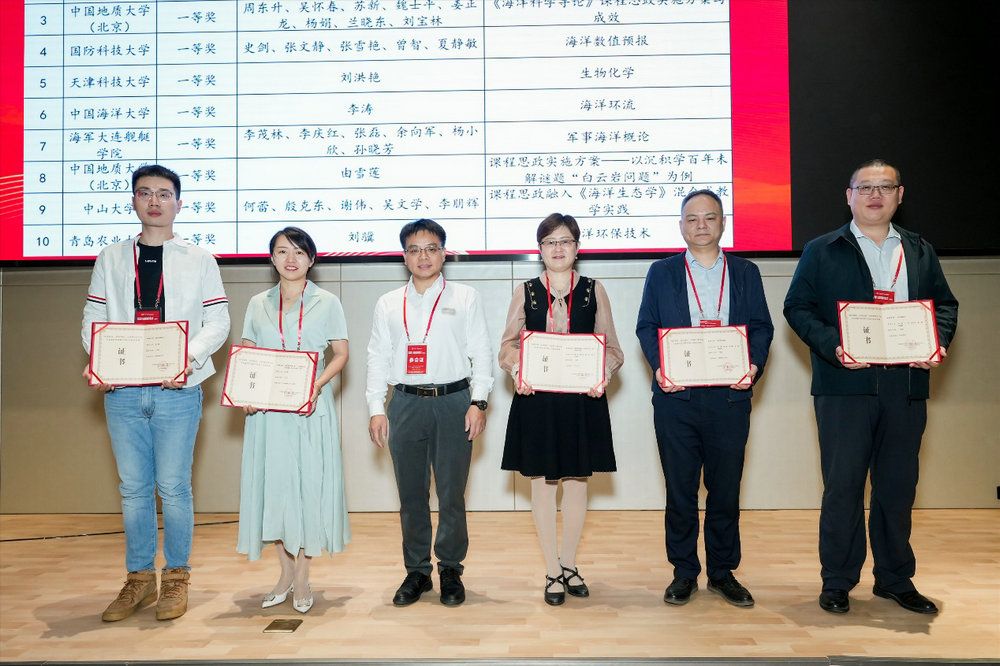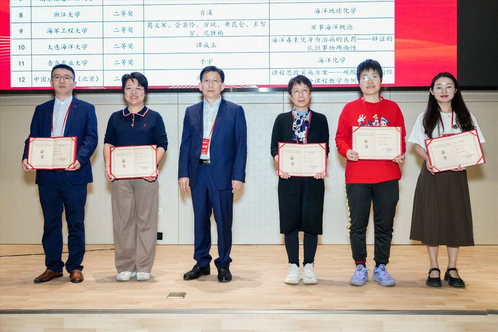 开幕式上,best365中国官方网站海洋科学学院副院长赵俊教授主持优秀案例的颁奖典礼,邀请三位教育部高等学校海洋科学类专业教学指导委员会委员进行颁奖。中国地质大学(北京)科技处处长、地调院院长、海洋学院院长吴怀春教授,集美大学水产学院黎中宝教授,海军大连舰艇学院海洋测绘系张立华教授对本次研讨会征集的34项课程思政优秀案例进行颁奖。